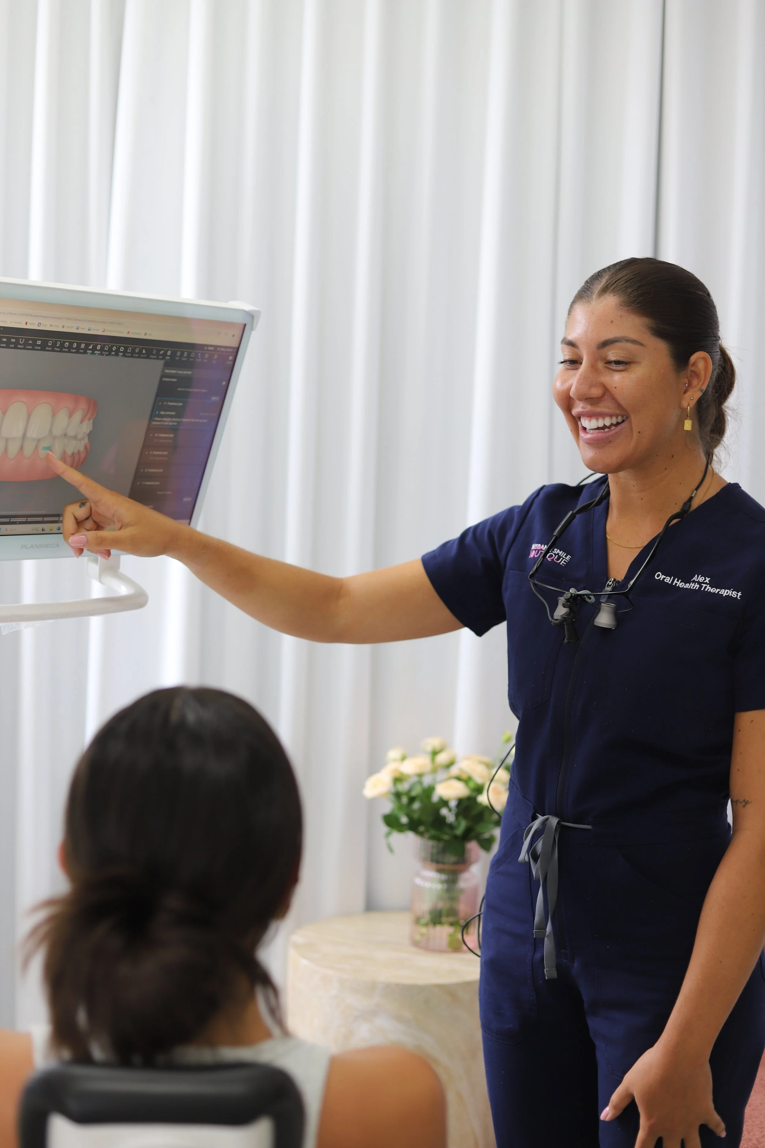 At Brisbane Smile Boutique, a preventive dental appointment starts with a warm welcome and review of your dental and medical history by Alex Forbes, the Oral Health Therapist. Alex carries out a comprehensive examination, often alongside Dr Leila Haywood or Dr Sabrina Ali, including dental x‑rays, assessment of your gums and bone levels, checks for decay, cracks, or issues with existing restorations, plus an oral cancer screening.