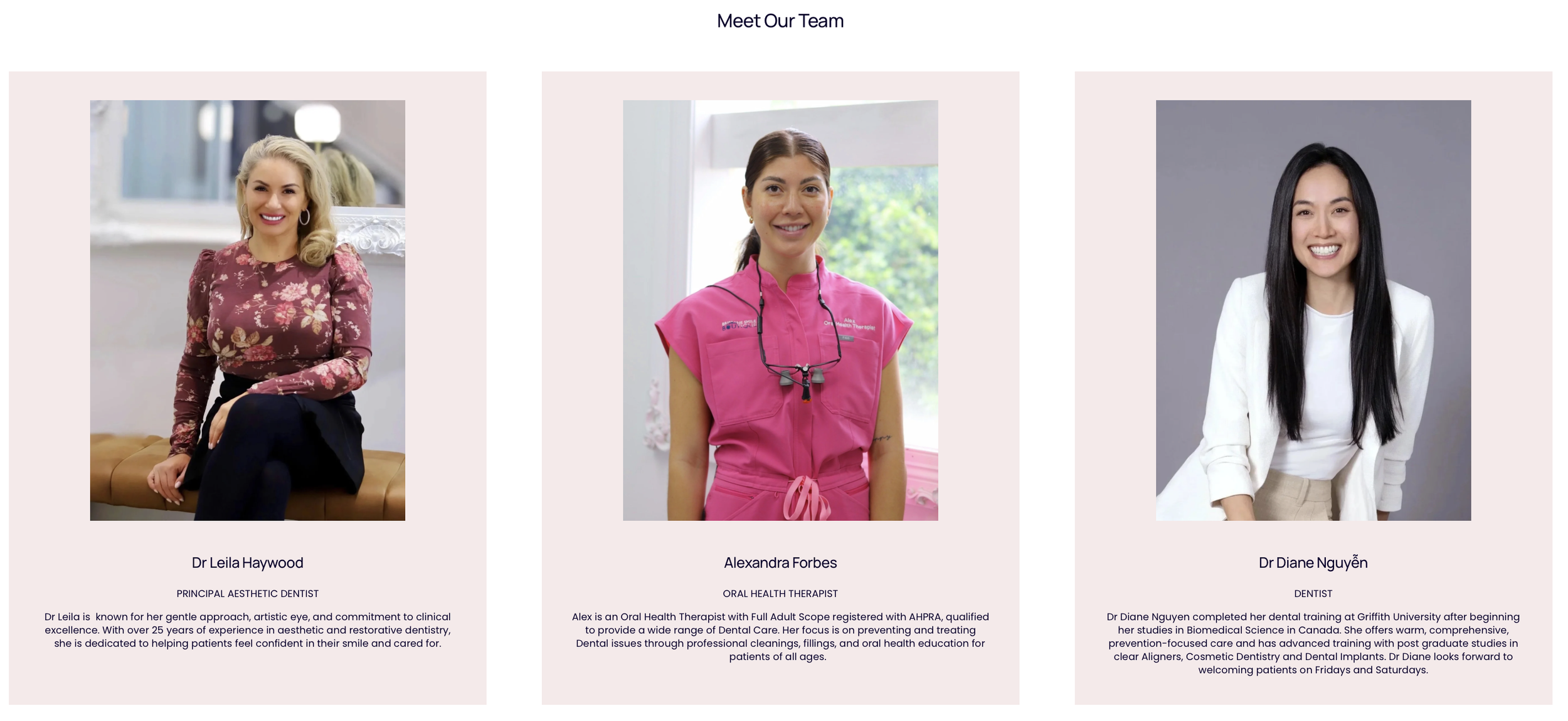 Our aesthetic team is committed to providing care that balances beauty, function, and long-term oral health. Every treatment is personalised, and each smile is designed to feel natural, comfortable, and aligned with your individual features.